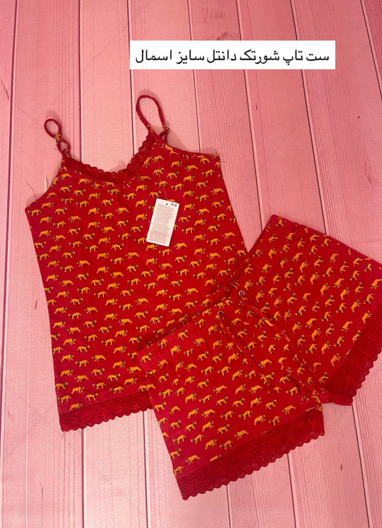 🩷ست تاپ شورتک دانتل (تاپ دور سینه ۹۰ با کشسانی ۹۶ -قد تاپ ۵۸ -شورتک دور باسن ۱۰۰ کشسانی ۱۱۰-دور ران ۶۰ کشسانی ۶۵